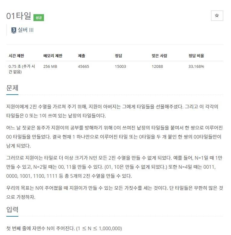 동적 프로그래밍의 문제들을 풀어보면서 동적 프로그래밍 문제들은 어느 조건들을 만족하면 답을 도출하기 쉽다는 것을 알았다. 이문제에서도 한가지 조건이 있었다.