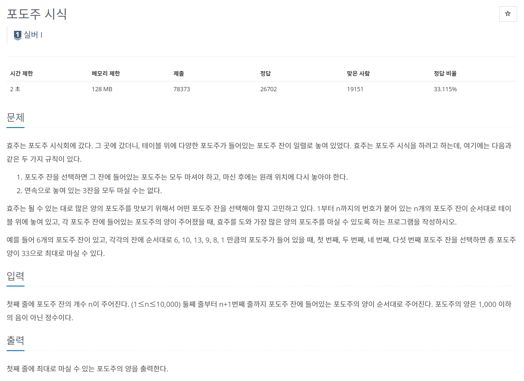 이 문제에는 규칙이 있다. 포도주를 전부 마셔야하고, 연속적으로 3잔을 마시지 않아야한다.