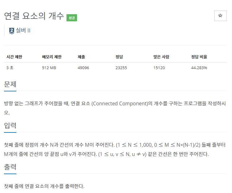 생각보다 단순한 문제다. 입력받은 그대로 그래프를 생성하고, DFS로 그래프를 탐색해서 연결되어 있는 요소가 몇개 인지 확인해서 개수를 출력하면 되는 문제 이다.